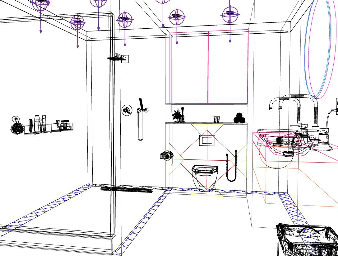 Draadmodel toont een gedetailleerde weergave van alle lijnen en objecten in een tekening, wat handig is voor het nateken van plattegronden. Als er kleuren aanwezig zijn in de plattegrond worden deze ook weergegeven.